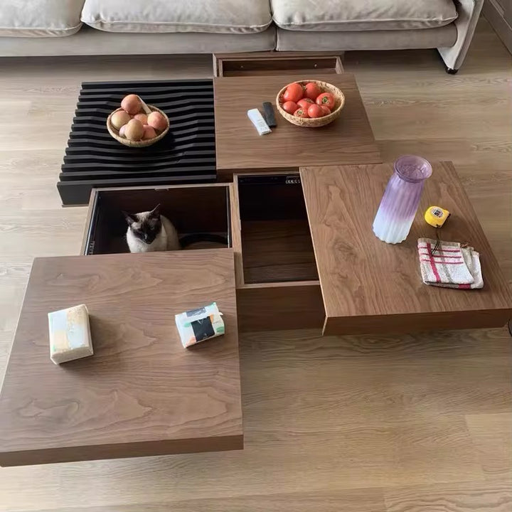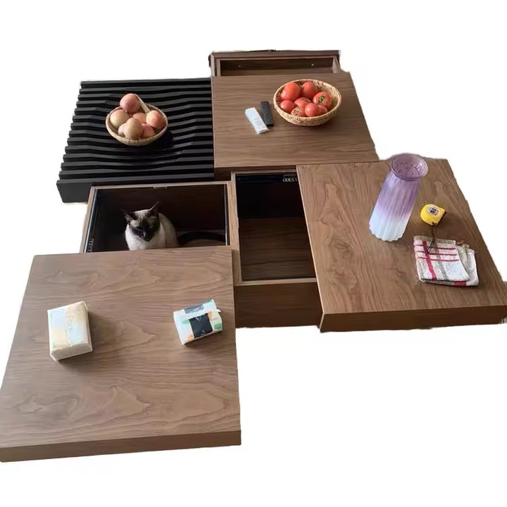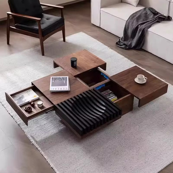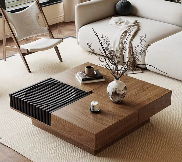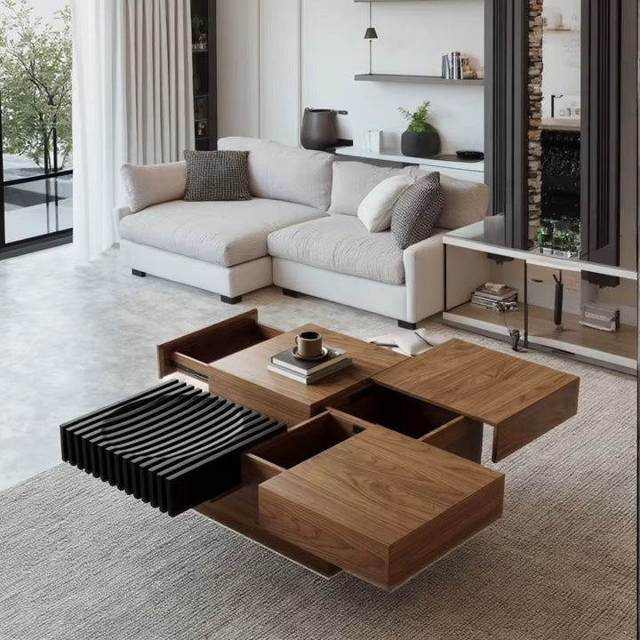 - Storage: Equipped with hidden sliding drawers and compartments, perfect for storing magazines, remotes, books, and accessories.