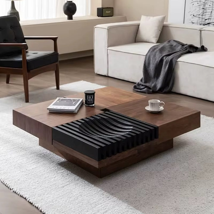 - Material: Crafted from natural wood in rich brown tones with a striking black accent.