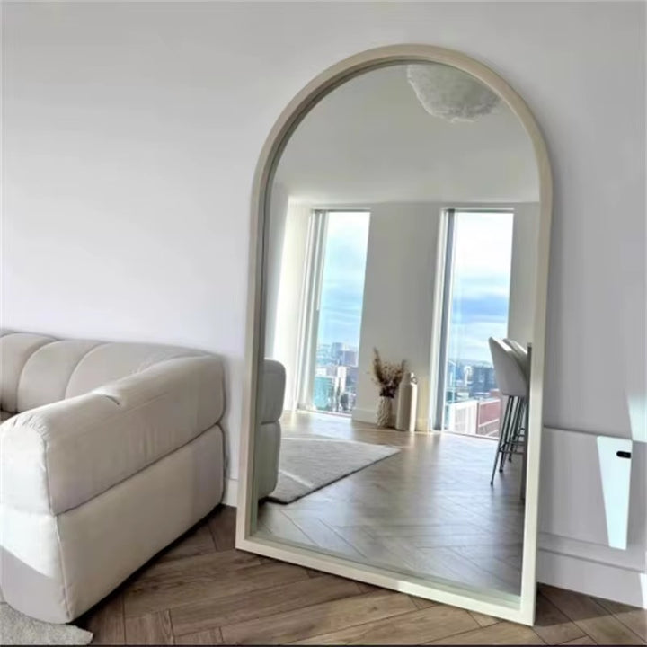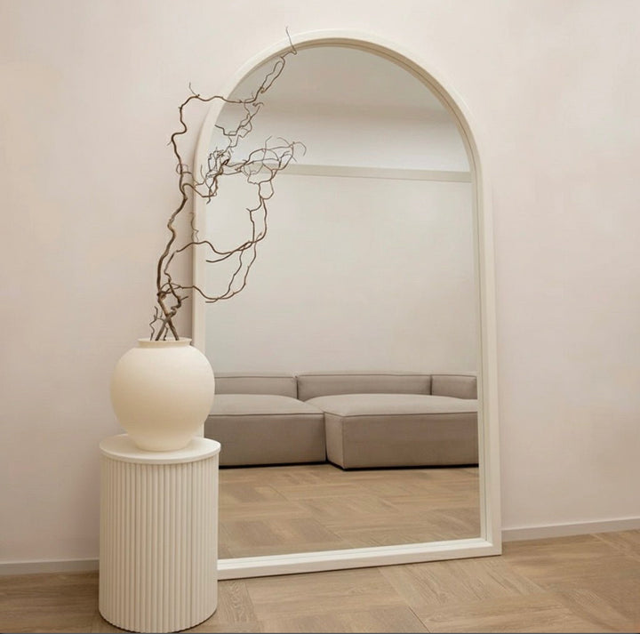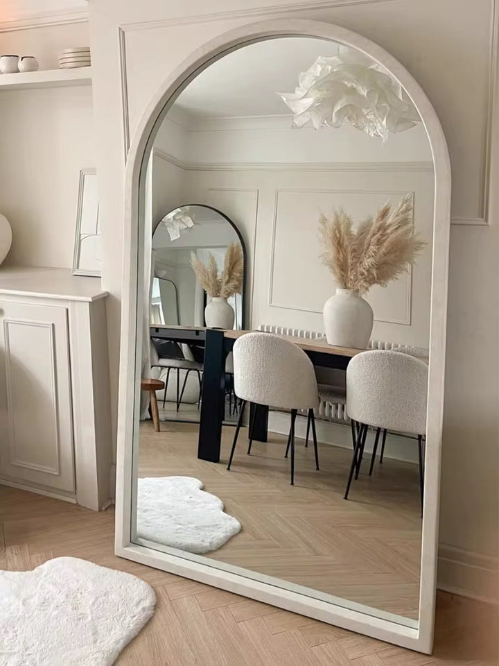 Transform your space with this stunning oversized arch mirror, designed to bring both elegance and functionality to any interior. Featuring a smooth off-white wooden frame, this mirror blends effortlessly with modern, minimalist, or classic décor styles.